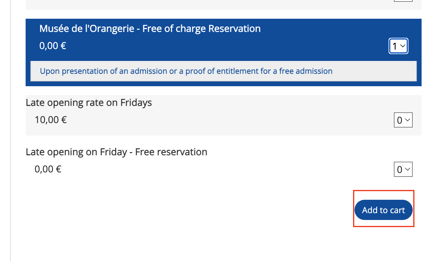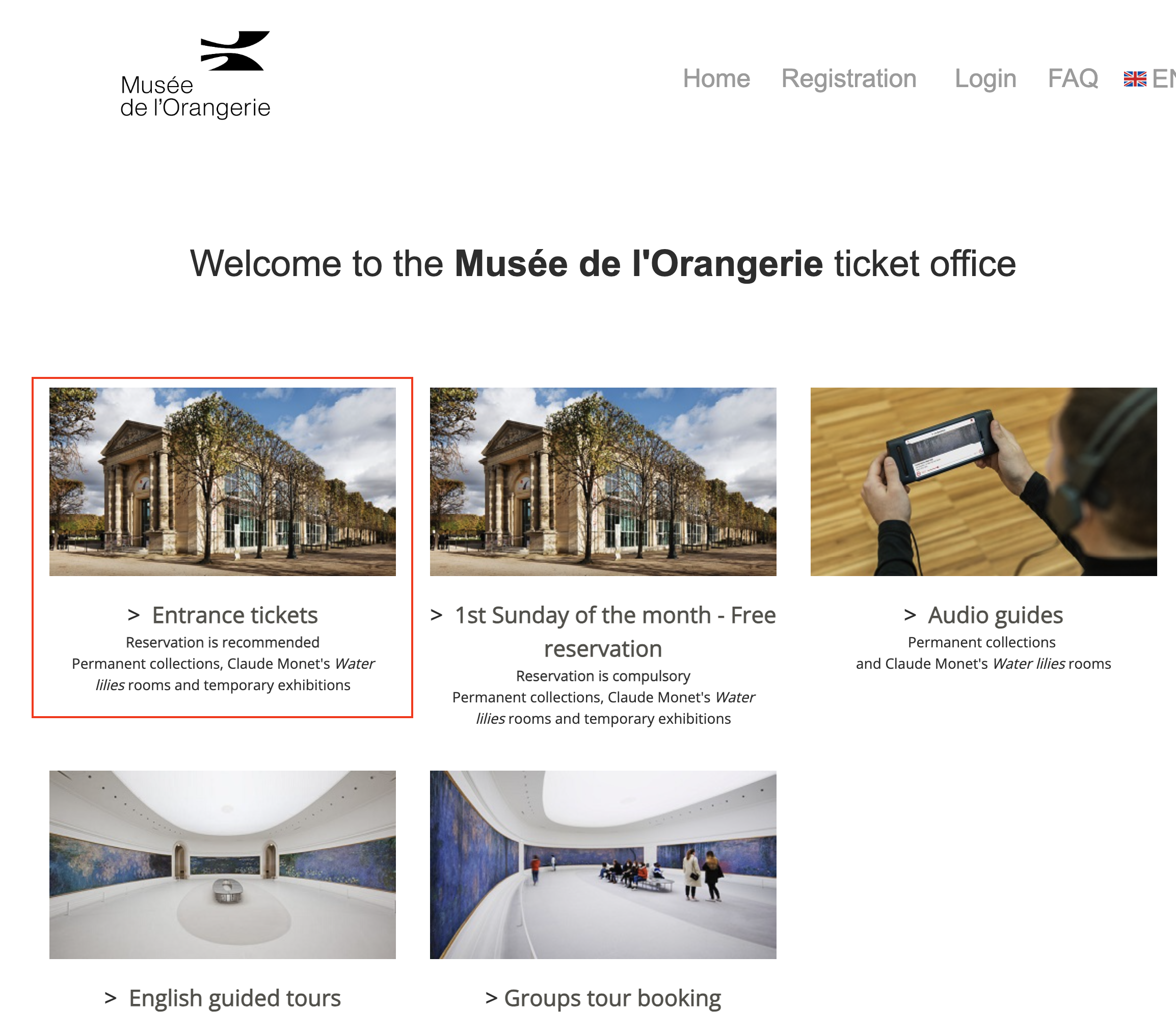 아래는 공식 홈페이지를 통해 오랑주리 미술관 입장권을 예약하는 전체 과정입니다.