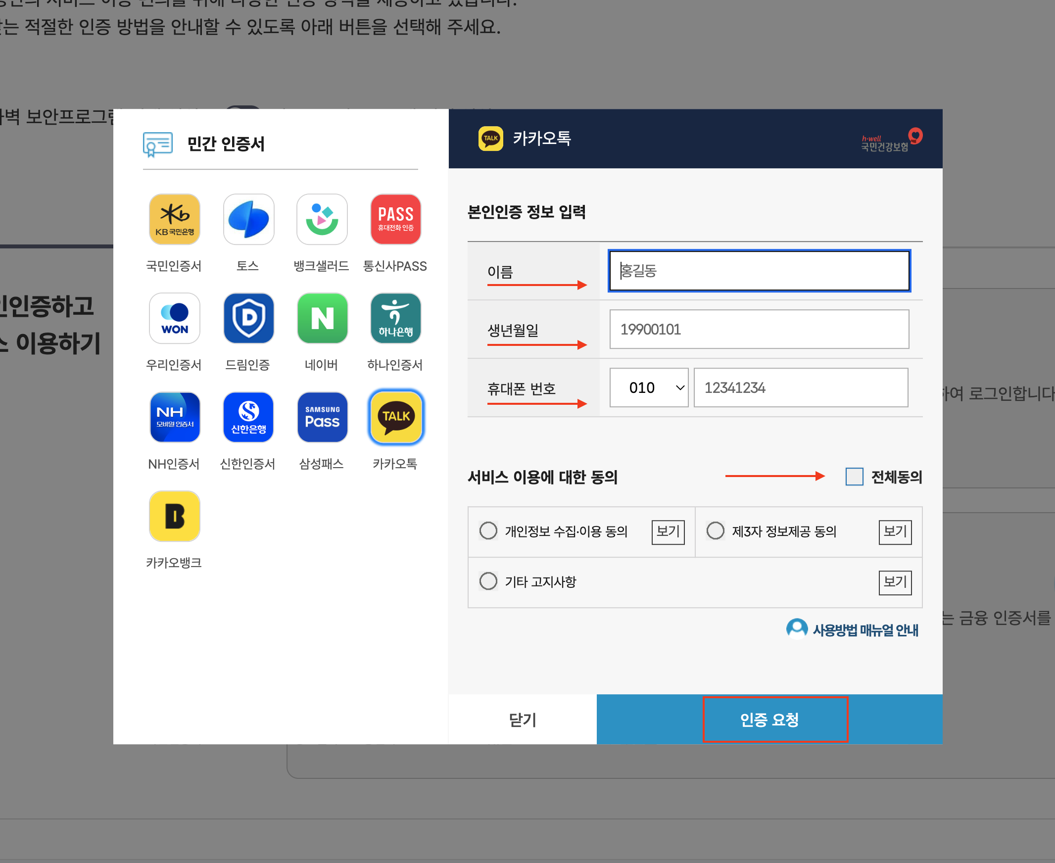 - 공동인증서 또는 간편인증을 통해 본인 확인