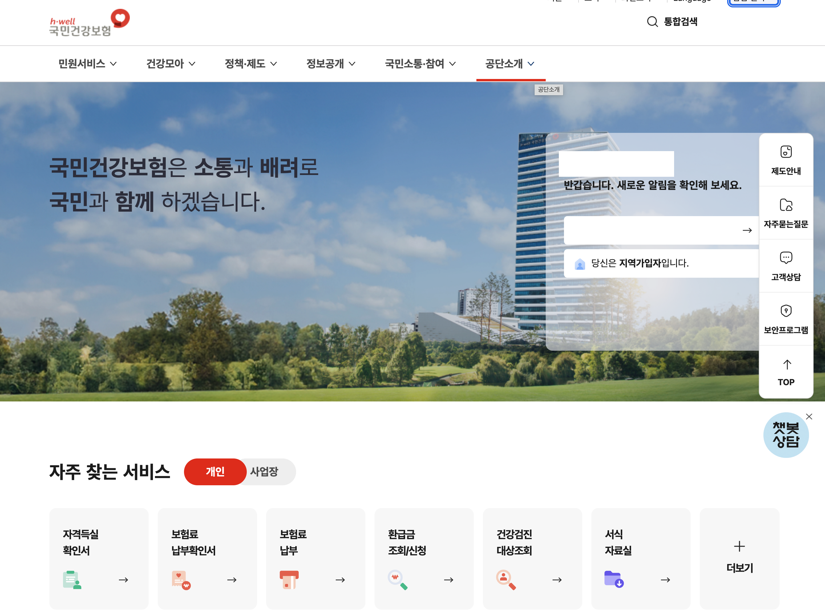 - 국민건강보험공단 홈페이지(NHIS)에 접속